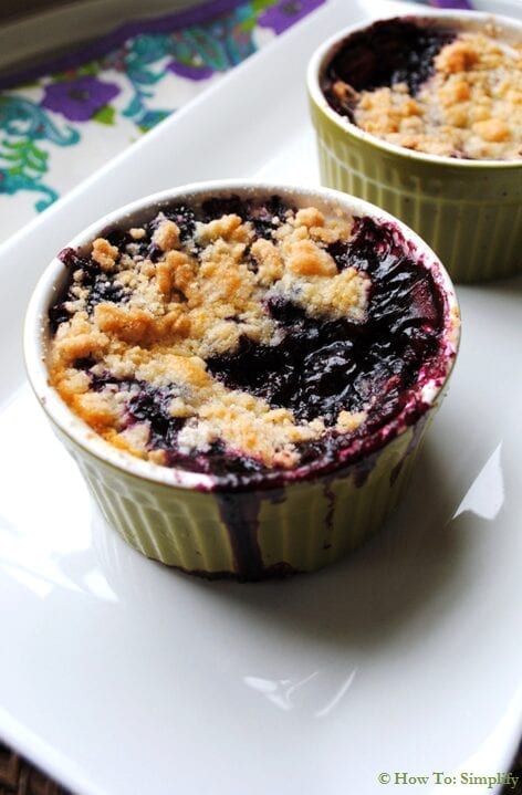 - Place ramekins on a baking sheet and bake for 35 minutes or until the topping is slightly brown and the berries are bubbly.