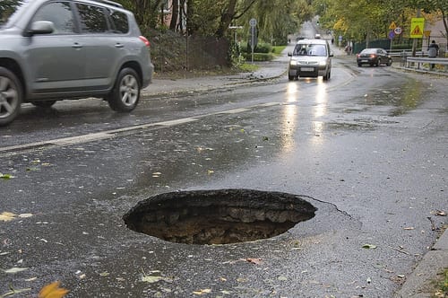 Grandma was out running errands in a shopping center one day and was driving in the parking lot. It had been raining hard, and a very large pothole had filled up with rain water and was not visible to drivers. As she drove over the pothole, her tire got stuck in the pothole (can I reiterate this was a very large pothole!) and her car was immobile. She was stuck.