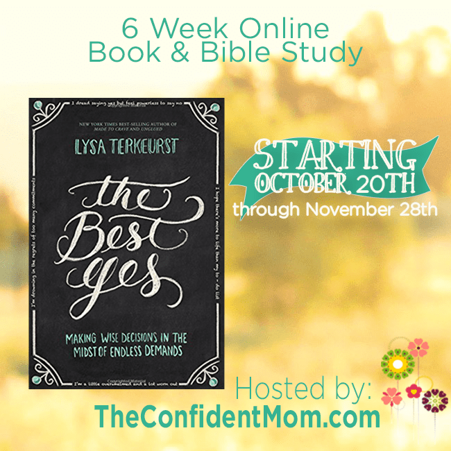 The Best Yes, by Lysa TerKeurst Online Book Study is coming Monday, October 20th – our official start date.  Go grab your book now, paperback with Prime Shipping it will get to you in time, but no worries if not – grab a kindle copy or just start a couple days late…. WE WANT YOU!!!  {You can read the first chapter free here}